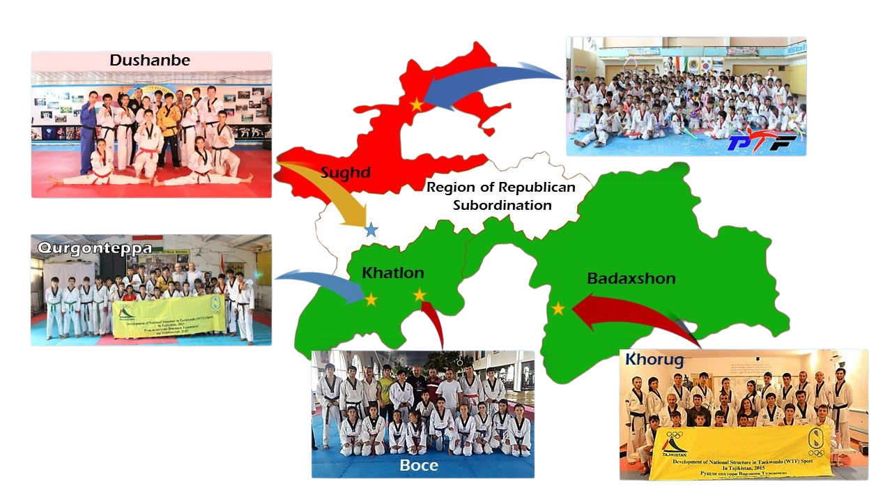 수도 두샨베를 비롯해 후잔드, 쿠르간튜베, 굴랍, 호루그 등 주요 도시에서 도장을 중심으로 수련생 교육에 전념하며, 태권도 보급과 저변 확대에 힘썼다. 현지 태권도 클럽들을 직접 방문하여 세미나와 기술 지도를 통해 지역 간 교류와 실력 향상에도 기여하였다.
